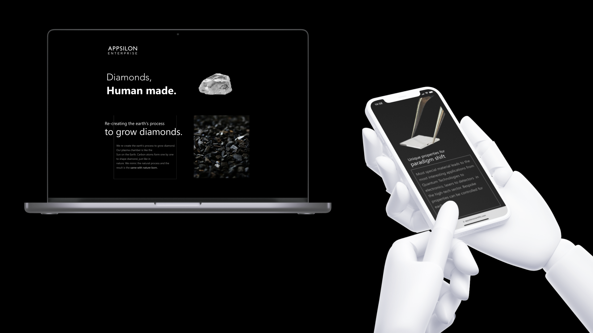In response to the Appsilon Team's request, a single-page website was crafted to succinctly capture their brand essence. Several minimalist design options were explored to emphasize their unique and niche positioning within the diamond sector. After careful consideration, the team opted for the showcased homepage design, which can be visited through this link.